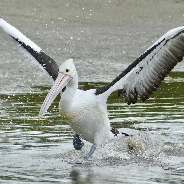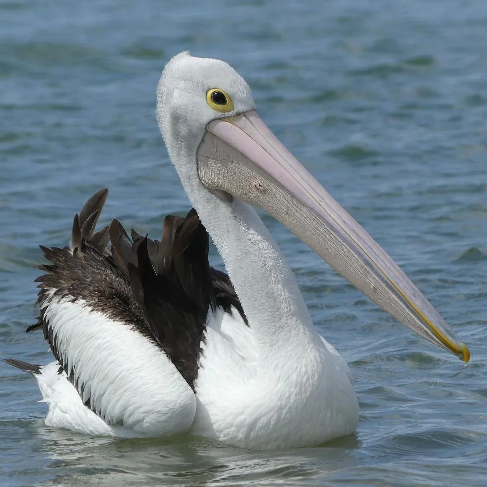 These large pied waterbirds have distinctive pink bills with a fleshy pouch beneath.