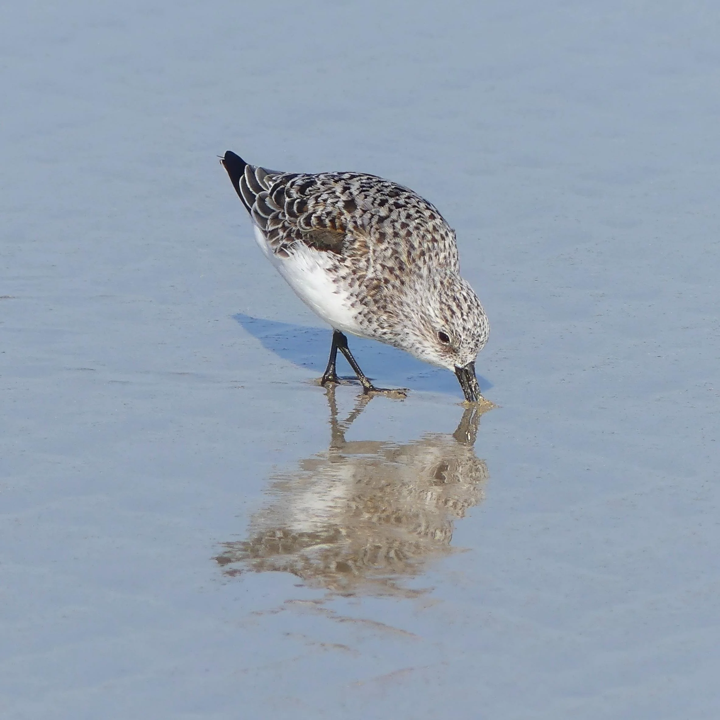 They are often seen in mixed groups with other migratory birds. At times, there are several hundred Sanderlings spread along the spit feeding at the water’s edge.