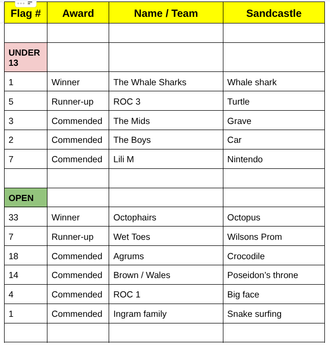 Every year the Sandy Point Community Group (SPCG) organises the famous Sandy Point Sandcastle Competition.